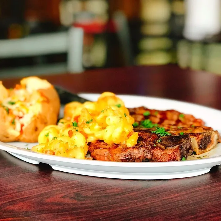 Seaweed Salad - Seasonal Fruit - Broccoli - Fries - Green Beans - Cilantro-Lime Rice - White Rice - Baked Potato - Loaded Baked Potato - Mashed Potatoes and Gravy - Hush Puppies - Coleslaw - Onion Rings - Tater Tots - Homemade Mac and Cheese - Side Caesar or House Salad - Garlic Bread - Cornbread